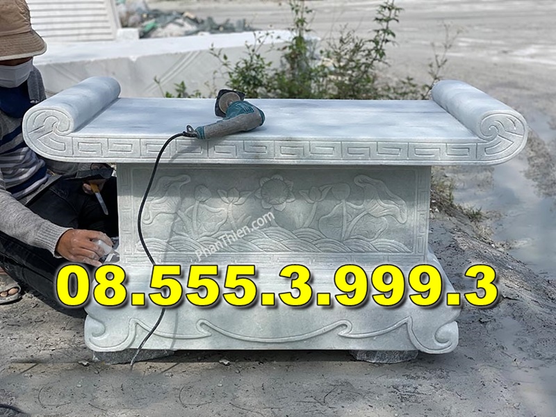 Giá bàn lễ đá có thể dao động tùy thuộc vào kích thước, loại đá sử dụng, và mức độ chạm khắc. Mặc dù có sự biến động trong giá cả, nhưng dưới đây là một số mức giá tham khảo:
