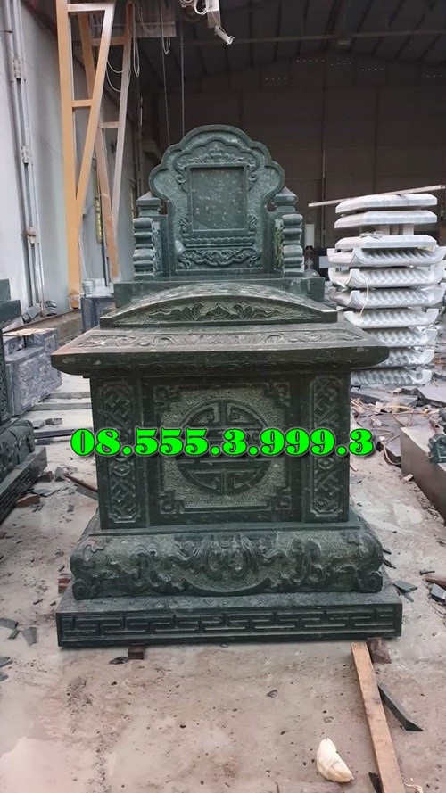 Đá xanh là loại đá được sử dụng phổ biến nhất trong việc chế tác mộ đá nguyên khối. Với màu sắc tươi mát, tự nhiên và độ bền cao, đá xanh mang lại vẻ đẹp trang nghiêm và vững chãi. Mộ đá xanh không chỉ chịu được sự khắc nghiệt của thời tiết mà còn dễ dàng phối hợp với các yếu tố phong thủy, tạo ra một không gian yên bình và thịnh vượng.