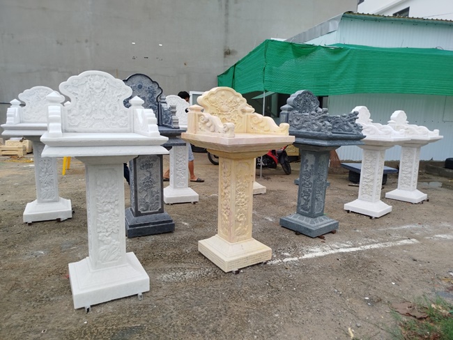 - Chất Liệu Bền Bỉ: Do đặc thù đặt ngoài trời, bàn thờ cần được làm từ những chất liệu có khả năng chống chịu tốt với điều kiện thời tiết khắc nghiệt như nắng, mưa, gió. Các vật liệu phổ biến bao gồm đá tự nhiên (đá hoa cương, đá cẩm thạch), bê tông cốt thép, hoặc gỗ chịu nước chuyên dụng đã qua xử lý.