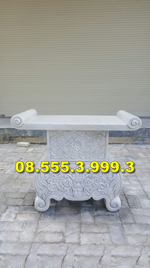 Bàn lễ đá nhỏ: Phù hợp với không gian thờ nhỏ hoặc gia đình có diện tích hạn chế. Kích thước thông dụng là 60cm x 40cm hoặc 70cm x 45cm.